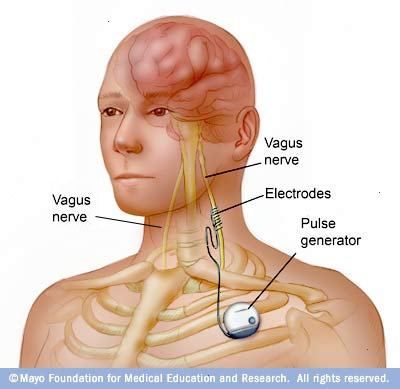 Nervus Vagus betekent in het latijn ''Zwevende zenuw''. Dit is de 10e hersenzenuw en loopt van de hersenen via de hals naar meerdere organen. Bij nervus vagus stimulatie wordt er een stimulator(wat lijkt op een pacemaker) in de borst geplaatst. Deze stimulator wordt links in de hals aangesloten op de nervus vagus. Het doel van deze behandeling is aanvallen onder controle krijgen met elektrische impulsen via de stimulator. Mensen met epilepsie komen alleen in aanmerking voor deze behandeling als medicatie onvoldoende helpt, of als de bijwerkingen van de medicatie te heftig zijn.